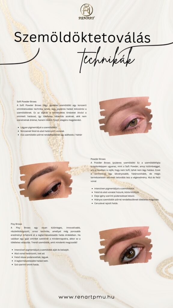 A legnagyobb változást mégis a szemöldöktetoválással tudjuk elérni: visszaadja a fiatalos ragyogást, lágyítja a vonásokat, és új, magabiztos kisugárzást teremt. Új történetet ír az arcról, amelyben a tükörből egy frissebb, ragyogóbb és magabiztosabb én néz vissza.
